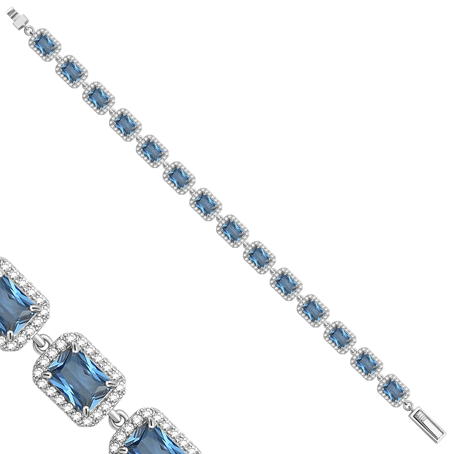 Luxurious bracelet with 16.8 ct blue topaz & 1.40 ct created diamond. 18K gold plated, 925 silver