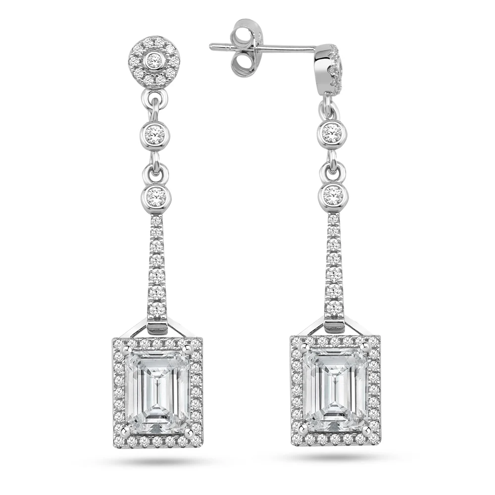Exclusive earrings with 3.85 ct Created Diamond. 925 silver & 18K gold, luxurious & elegant