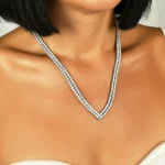 Luxury necklace with 7.68 ct Created Diamond. 925 silver & 18K gold, anchor chain (42-45 cm)